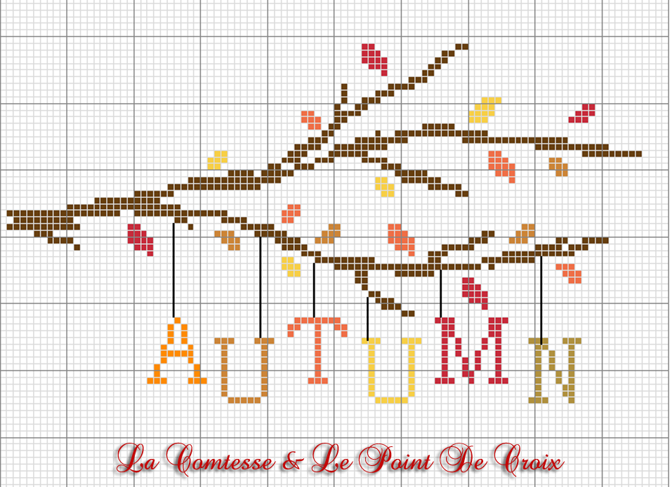 Pour saluer l'arrivée de l'automne, je vous offre une petite grille gratuite. Le format que je vous propose peut servir pour broder une ATC. (format PDF sous l'image - PDF format under the picture)